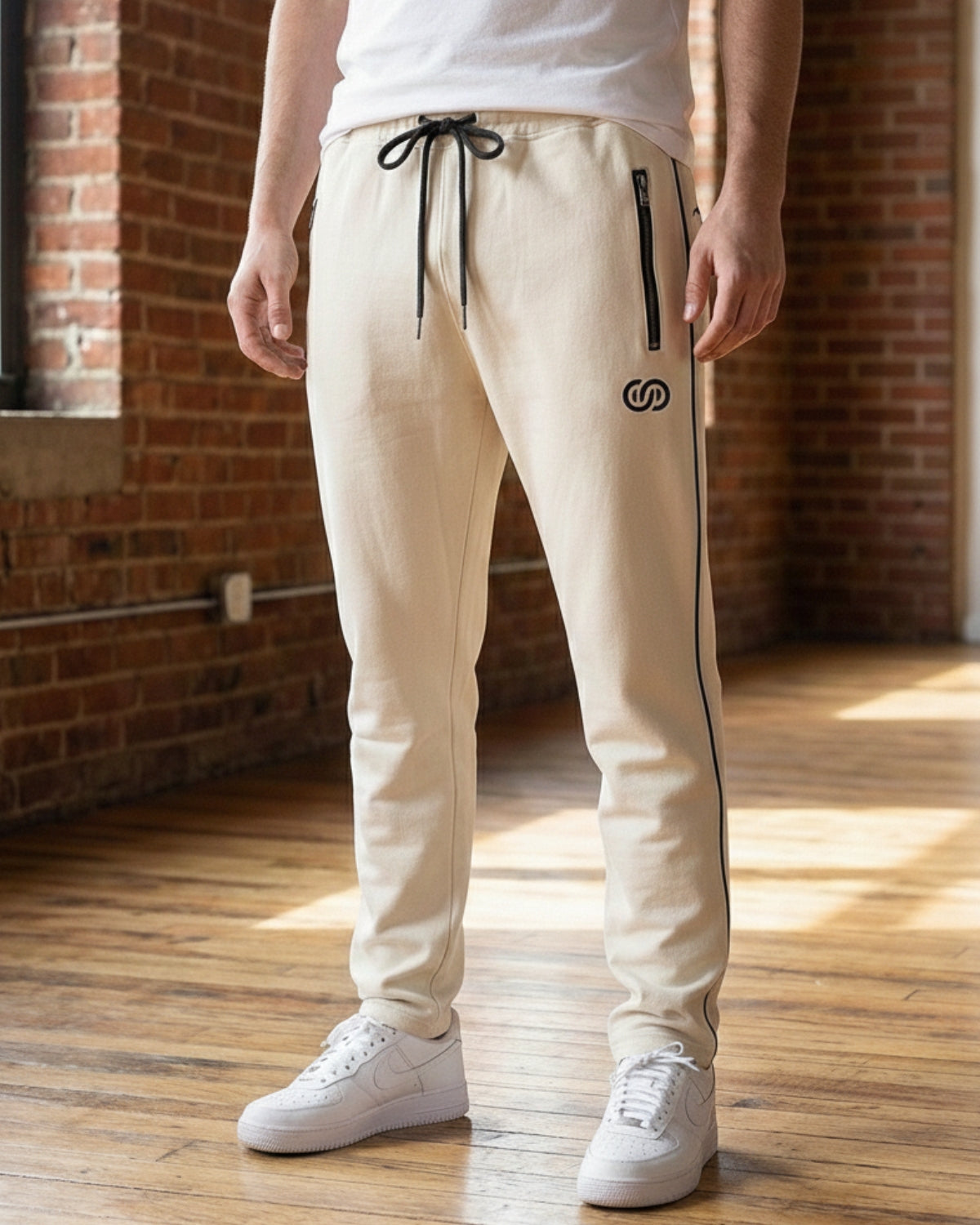 Details: Thoughtful Craftsmanship. Equipped with a discreet back welt pocket for a clean profile and a secure elasticated waistband. The signature lateral piping adds a touch of visual interest, elevating these from standard basics to a standout casual staple.