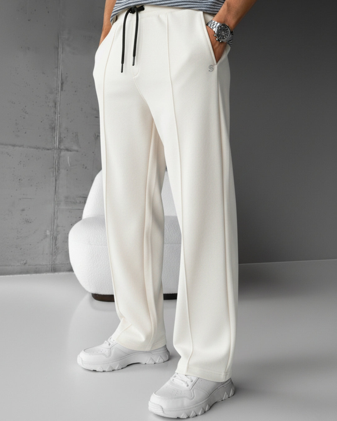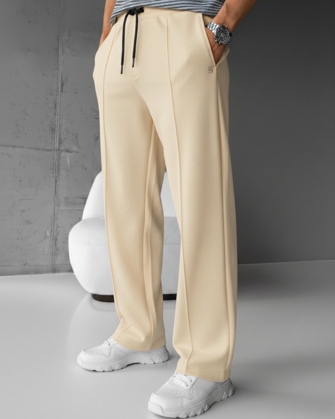 The Fabric: Crafted from a premium cotton fleece blend, these trousers offer a soft, luxurious feel against the skin and provide the perfect amount of warmth for any season.