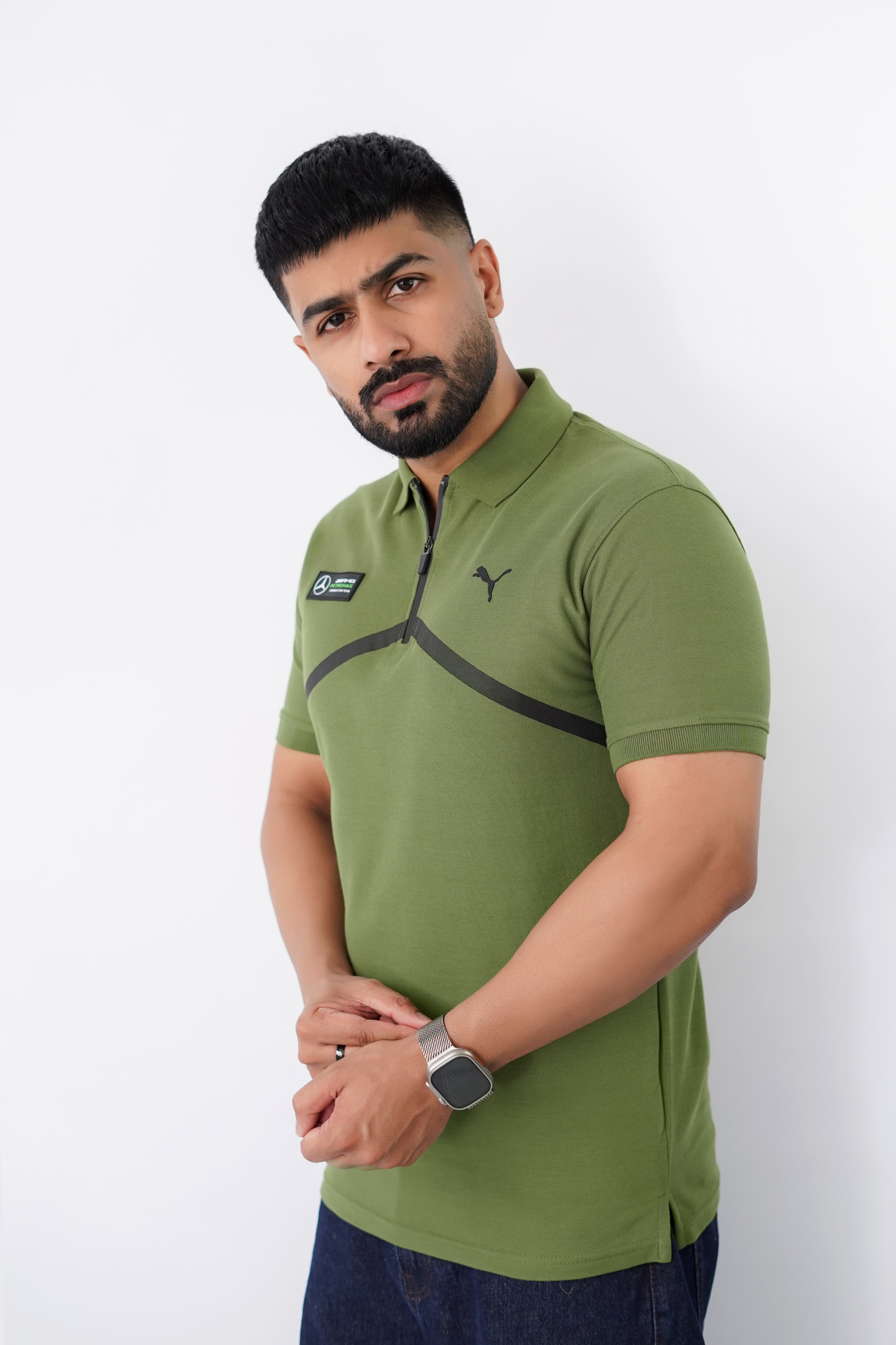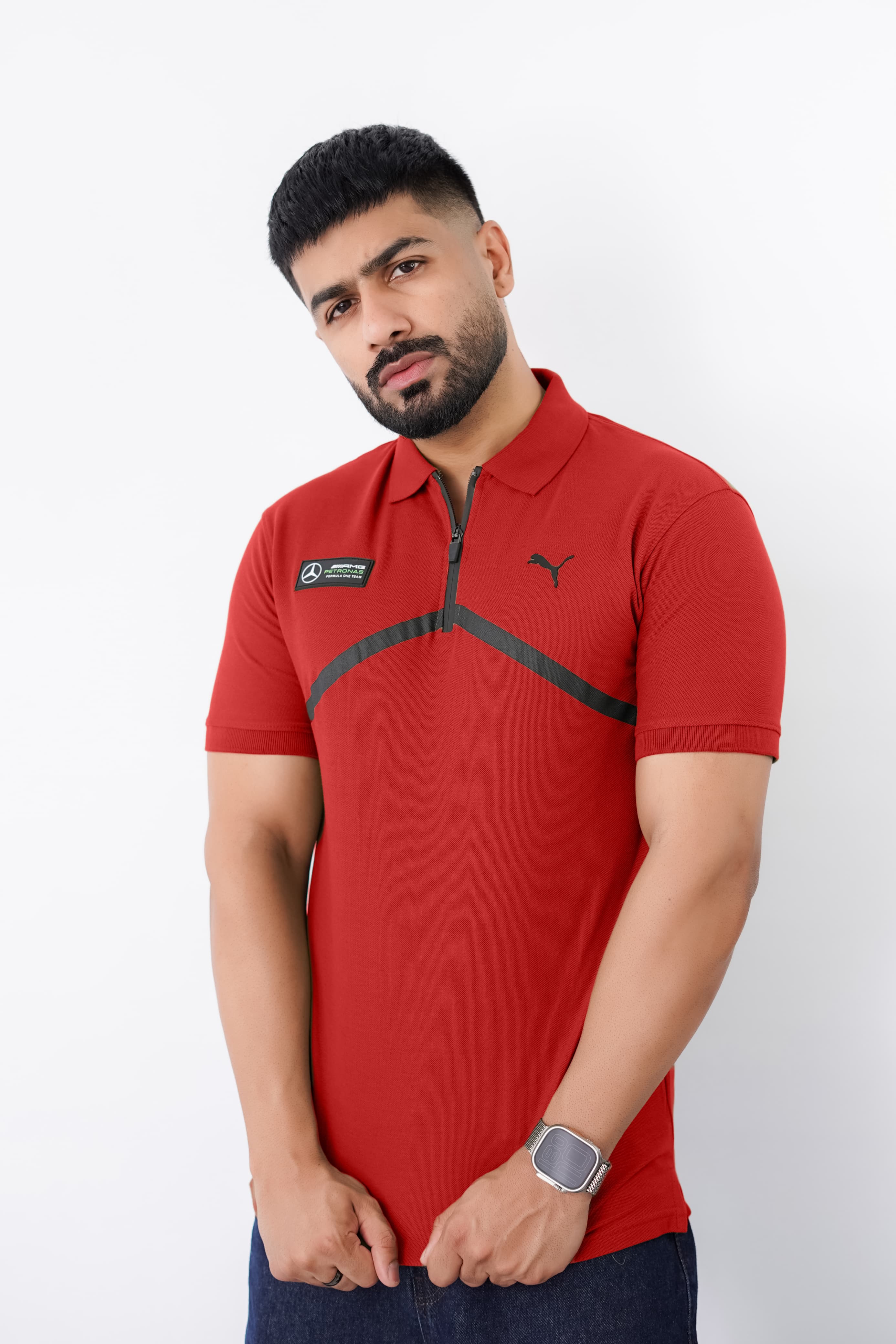 Design: Signature embroidered emblem on chest