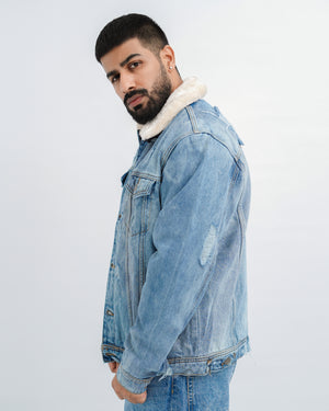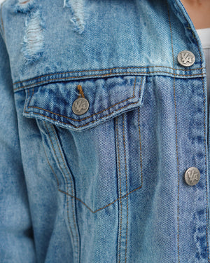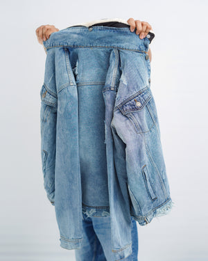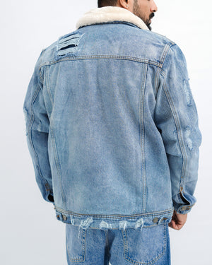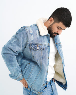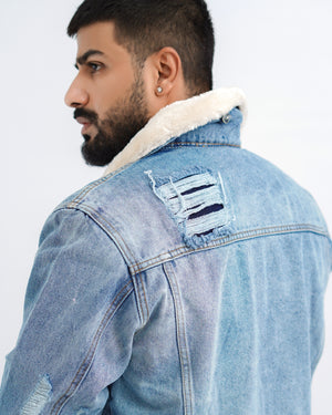 Branded ripped fur denim jacket